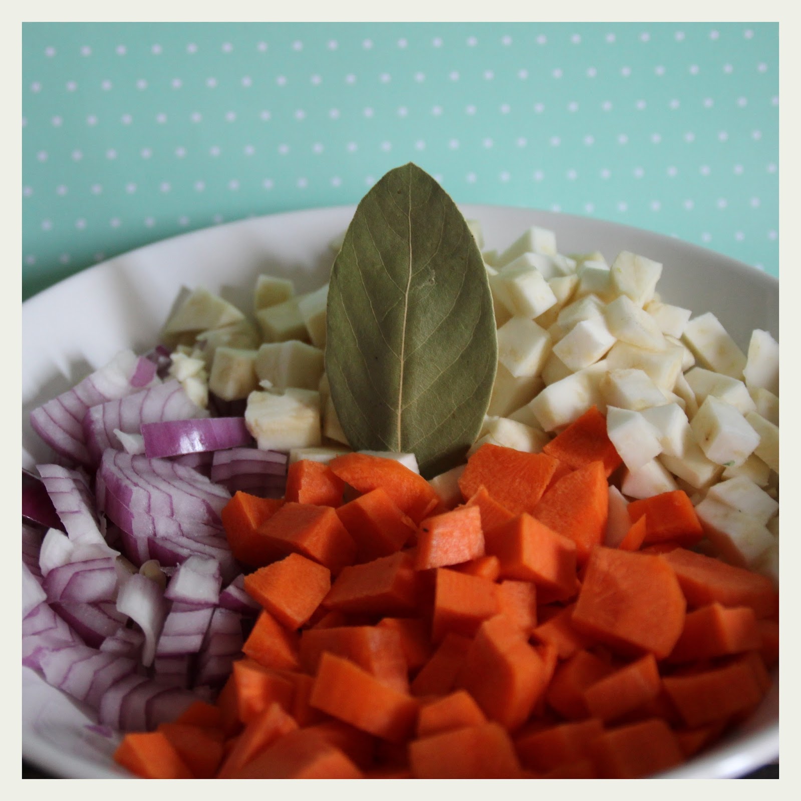 Zwiebel, Möhre und Sellerie würfeln, Knoblauch fein hacken. In einer beschichteten Pfanne oder einem beschichteten Topf, Knoblauch und Zwiebel in Olivenöl andünsten. Gemüse gemeinsam mit dem Lorbeerblatt hinzugeben und anbraten. Ein wenig salzen und pfeffern. Zwar soll das Gemüse nicht verbrennen, jedoch ist ein wenig Farbe wünschenswert, da die Röstaromen beim Ablöschen für besonders viel Geschmack sorgen und somit die Spabo aromatischer schmeckt. Das Hackfleisch mit anbraten und alles mit Wein ablöschen. Die Hack-Gemüse-Mischung soll nicht wie in einem Rotweinmeer schwimmen, sondern in einem seichten Teich, also nicht zu viel Rotwein.